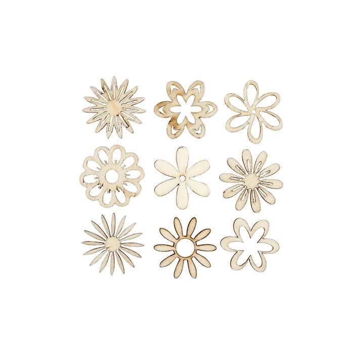 Creativ Company Дървени цветя за декорация, 9 вида по 5 броя