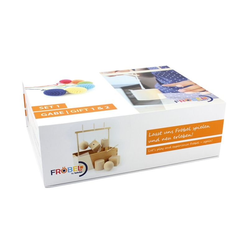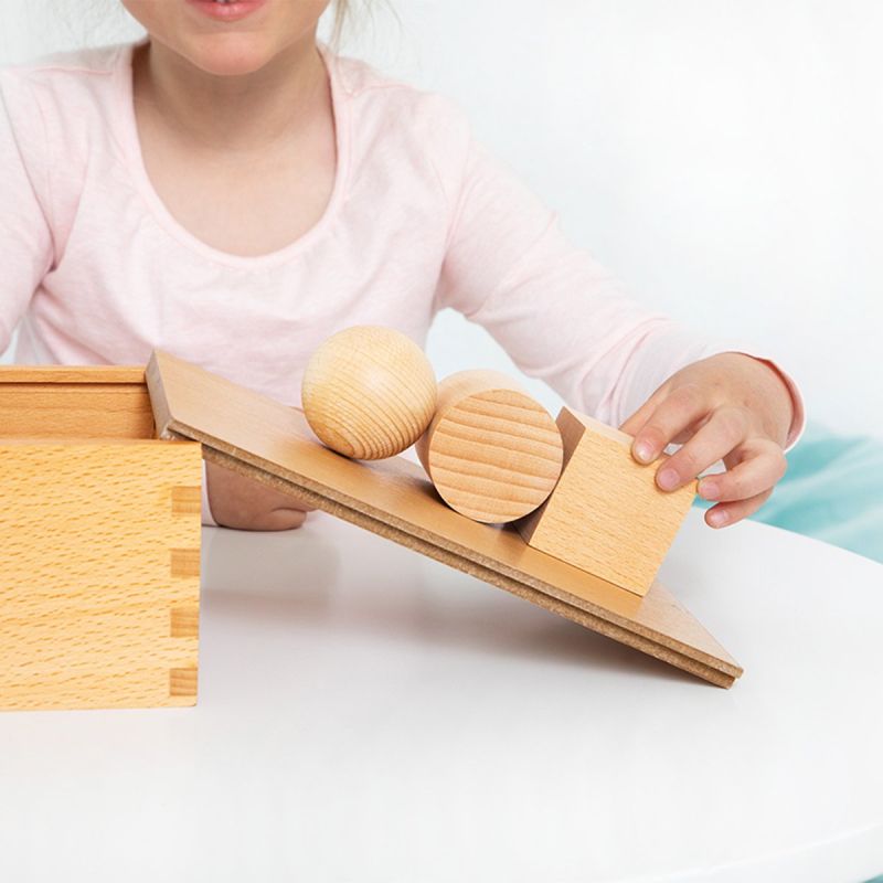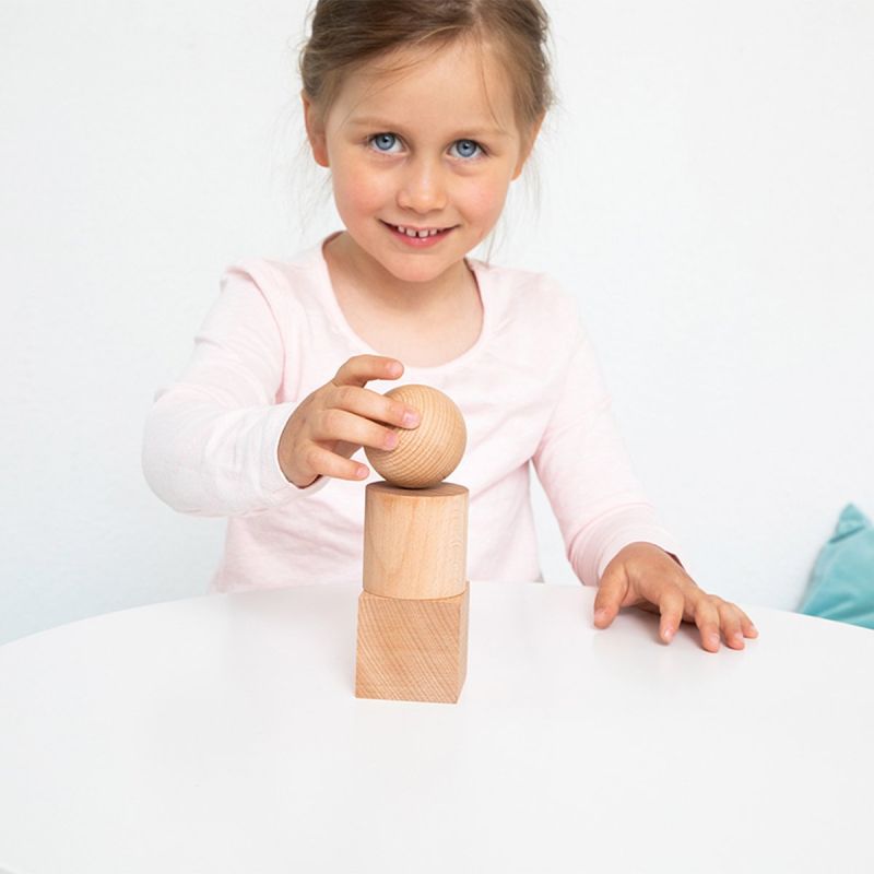 Според Фрьобел топката е първата играчка на детето. Затова този комплект е чудесен за първите срещи на децата със света – шестте вълнени топки ще привлекат интереса му със своето движение. А в следващите етапи от своето развитие, дървените топка, кубче и цилиндър ще го въведат в света на движението. С тази играчка децата ще експериментират спокойно и безопасно.