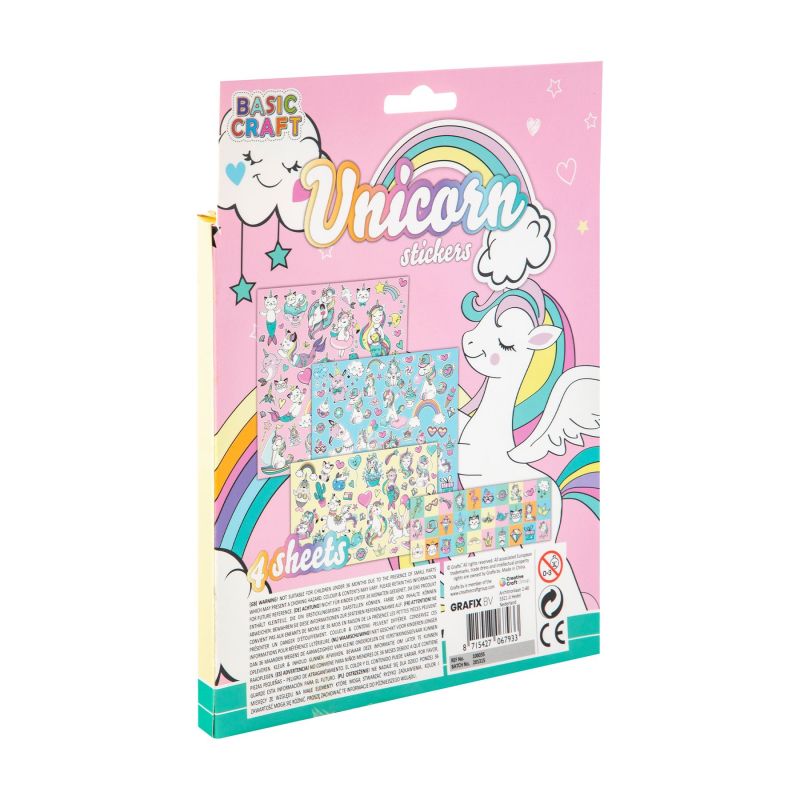 4 листа с повече от 100 различни цветни стикера с еднорози!