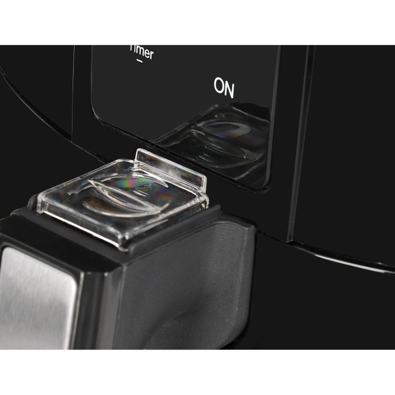 AFD501 има голям LED дисплей, показващ температурата и времето на готвене. Под дисплея има лесен за използване сензорен панел, от който можете да включвате и изключвате уреда, да задавате време (максимум 1 час), температура (от 150 до 200°C) и режим на работа на фритюрника.