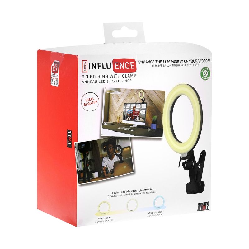 TNB Светлинен ринг за монитор Influence, LED, 6'', бяло-черен