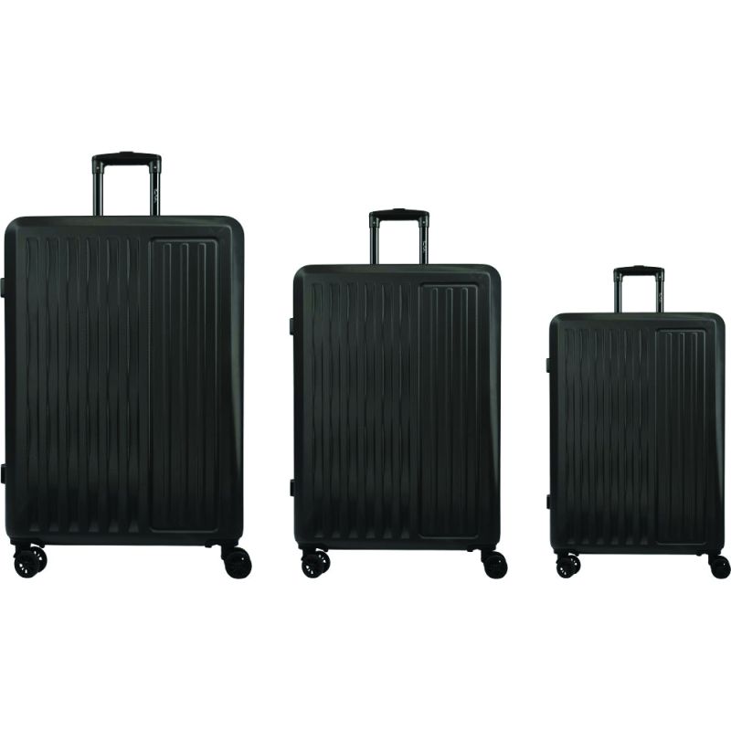 Съдържа 3 броя твърди куфара Spinner издръжлив ABS материал, най - малкият размер е съвместим с ръчен багаж. Многопосочни колела за лесно маневриране, вътрешна телескопична дръжка с бутон за затваряне, локер. Размери: S: 34 х 23 х 55 см, 43 литра; M: 44 х 26.5 х 65 см, 76 литра; L: 50 х 29 х 75 см, 108 литра.