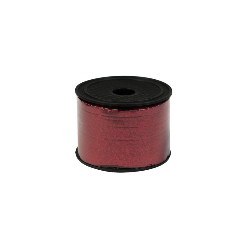 Лента-панделка, металик, с брокат, 0.5 cm, 90 m, червена