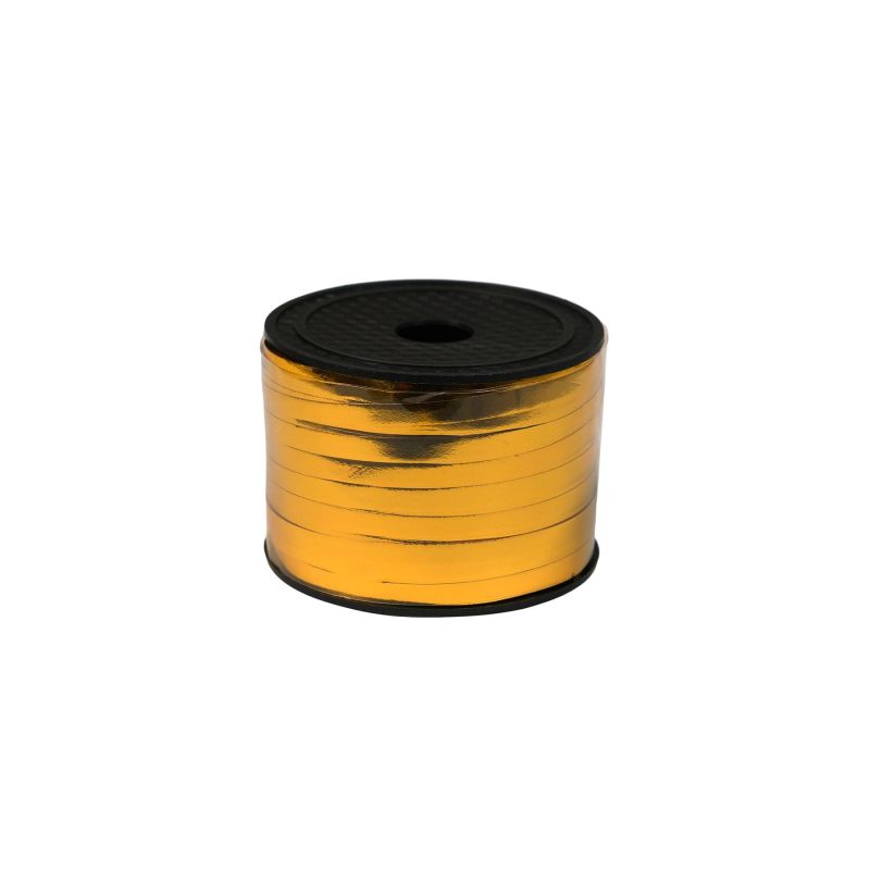 Лента-панделка, металик, 0.5 cm, 90 m, жълта