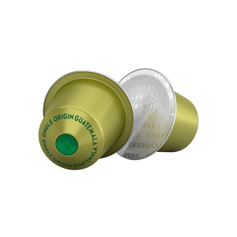 Наслади се на STARBUCKS® Single-Origin Guatemala от Nespresso® – кутия с 10 броя кафе капсули, приготвени от същите кафе зърна 100% Арабика, използвани в кафетериите STARBUCKS®. Със свеж отчетлив вкус, ароматни лимонови нотки и интензитет 5, това светло изпечено кафе е прекрасен избор за твоите STARBUCKS® кафе рецепти.