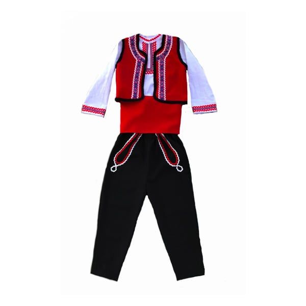 Мъжката народна носия се характеризира с бяла риза, вълнен елек или сако и широки панталони, често вълнени и цървули. Жилетката или сакото обикновено са украсени със сложни бродерии и метални копчета. Мъжете също носят калпак, често изработен от вълна или филц, украсен с цветна бродерия.