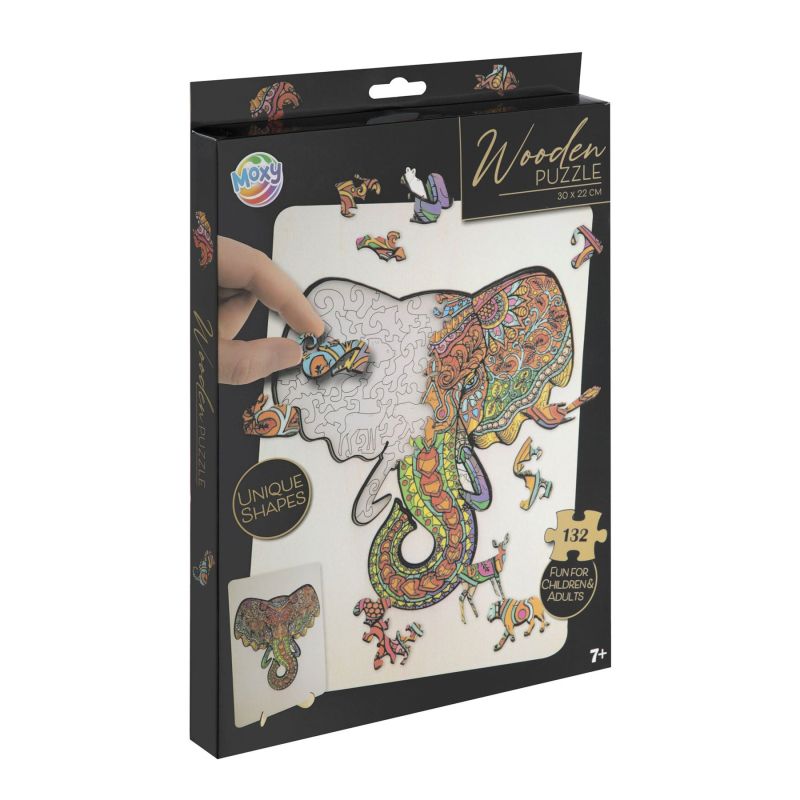 Moxy Пъзел Слон, уникални форми, дървен, 132 части