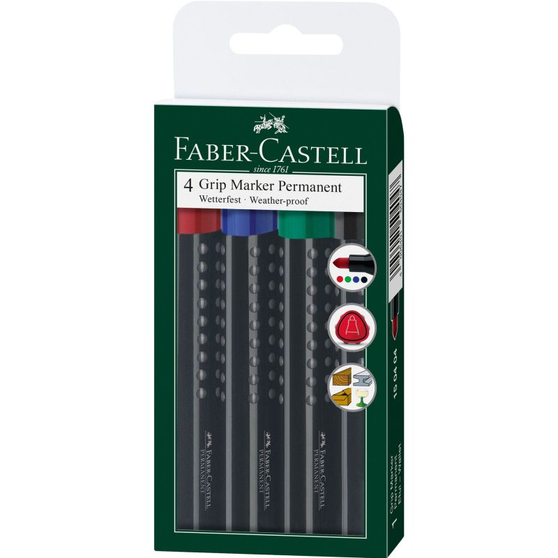 Faber-Castell Перманентен маркер Grip 1504, объл, 4 цвята