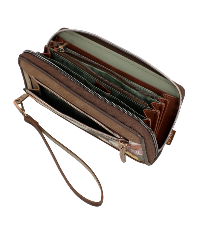 Вид:Висококачествена еко кожа Вид на затваряне: С цип Джобове: 1 джоб с цип-място за банкноти и лични документи,отделен джоб за монети и 1 заден с цип Тип дръжка:Каишка за ръка Размери:20x10x2 cm Вътрешен състав: 100% ПОЛИЕСТЕР