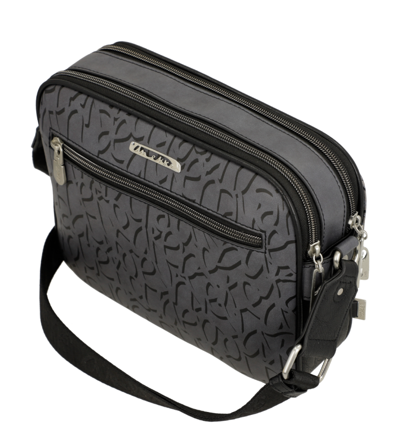 Вид: Висококачествена еко кожа Вид на затваряне: Цип Джобове: 2 основни с цип, 1преден и 1 заден с цип, вътрешен с цип и място за мобилен телефон и ключове Тип дръжка: 1 регулируема дълга дръжка Размери: 25 x 19 x 6 см Вътрешен състав: 100% полиестер