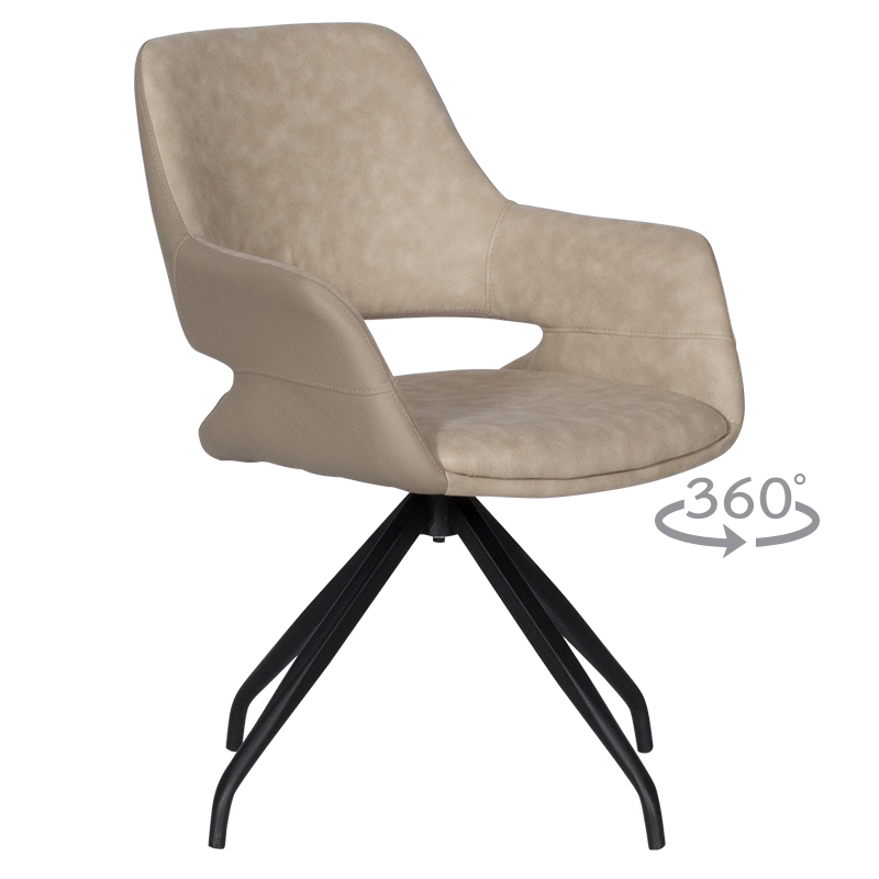 WINSLOW е стилен и модерен трапезен стол с функция за въртене на седалката на 360°. За изработката на седалката му е използвана комбинация от различни материали и цветове, а краката му са направени от прахово боядисан метал в черен цвят. Пълна информация за размерите и характеристиките на модела ще намерите в таблицата в таб/поле "Техническа информация".