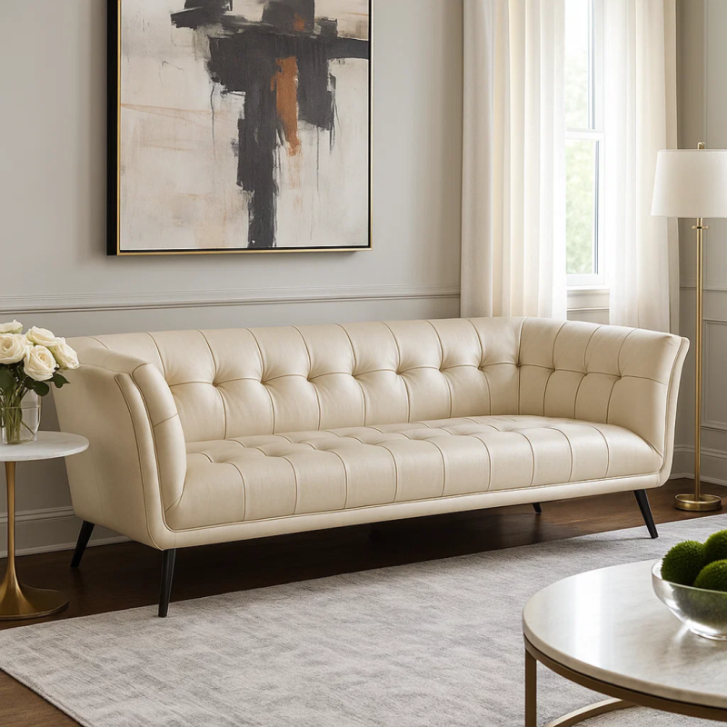 LENA е триместно канапе със стилен дизайн и здрава конструкция от дърво и метал. Неговите форми и крачета в комбинация с капитонираната дамаска придават луксозно и модерно излъчване на модела. Пълна информация за размерите и характеристиките на LENA ще намерите в таблицата в таб/поле "Техническа информация".