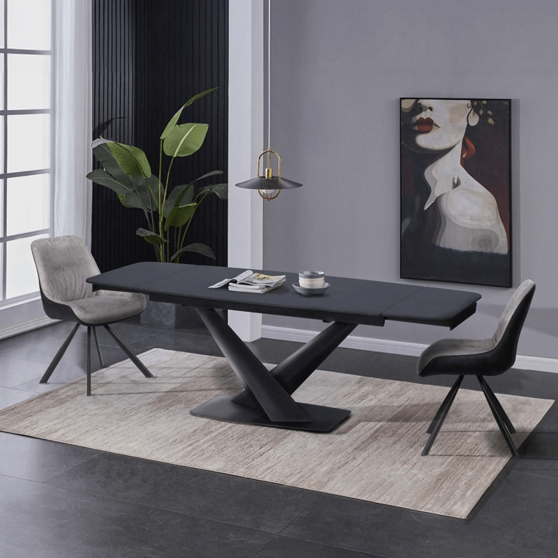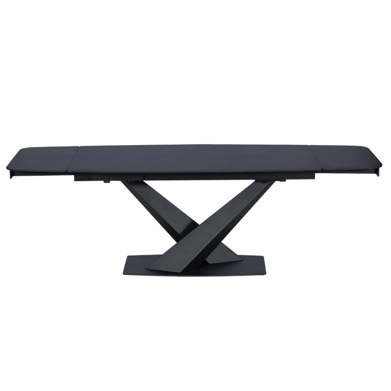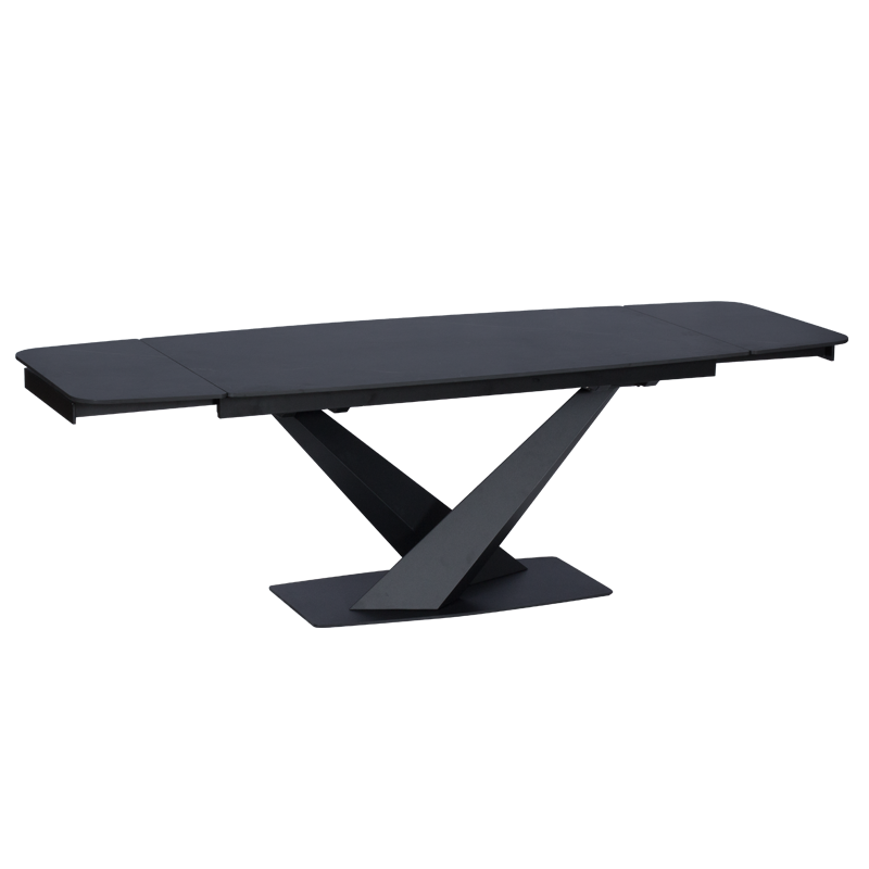 PLOCK е модерна и стилна трапезна маса с плот от керамика и функция за разтягане. Дизайнът на основата е разчупен и оригинален, а праховобоядисаният метал, от който е изработена, гарантира здравина и стабилност. Пълна информация за размерите и характеристиките на модела ще намерите в таблицата в таб/поле "Техническа информация".