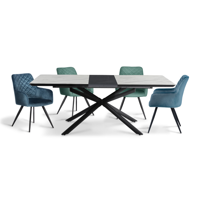 OMAHA е модерна трапезна маса със стилна визия и нестандартни крака. Моделът е изработен от висококачествени материали и практична функция за разтягане. Пълна информация за размерите и характеристиките на масата ще намерите в таблицата в таб/поле "Техническа информация".