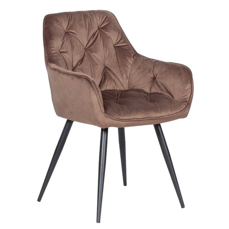 Трапезният стол LATINA притежава елегантна визия и стабилни крака, изработени от праховобоядисан метал. За седалката и облегалката му е използвана висококачествена дамаска с интересна текстура. Пълна информация за размерите и характеристиките на модела ще намерите в таблицата в таб/поле "Техническа информация".