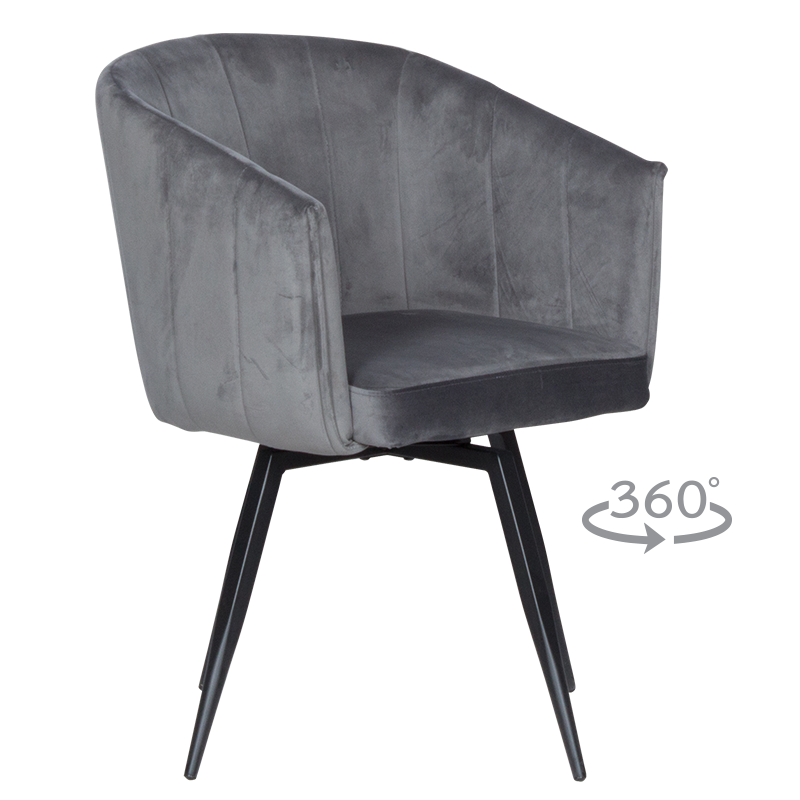 Трапезен стол Venice е подходящо решение за обзавеждането на дома или за интериора на модерни заведения. Седалката му е изработена от устойчива и лесна за поддръжка дамаска, а основата от праховобоядисан метал. За максимален комфорт моделът разполага с функция за завъртане на 360 °. Пълна информация за размерите и характеристиките на модела ще намерите в таблицата в таб/поле "Техническа информация".