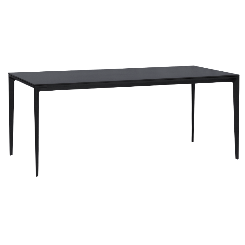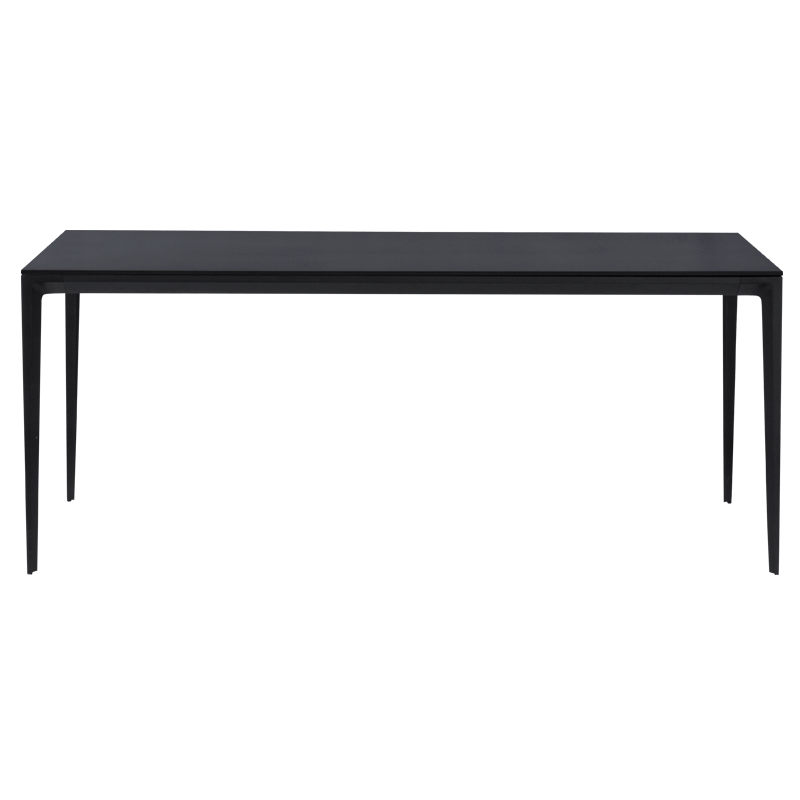 Трапезна маса DAMIAN се отличава с изчистен дизайн. Правоъгълният плот с размери 180 см x 90 см има специално покритие, което го защитава от надраскване, влага и UV лъчи. Това позволява използването на модела и на открито. Праховобоядисаните алуминиеви крака допълват визията и осигуряват стабилност и удобство.