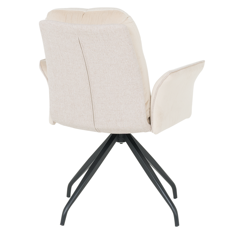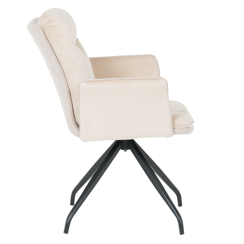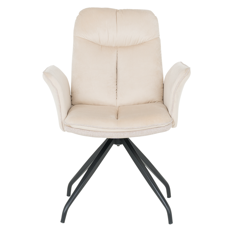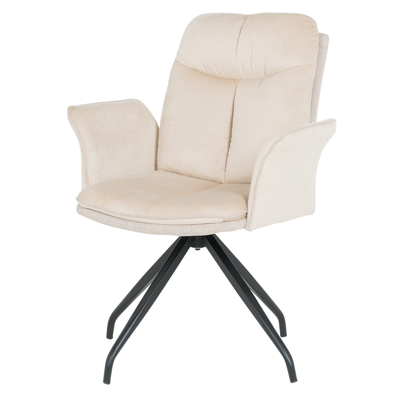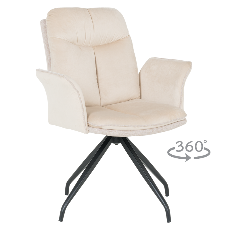 MARLOW 1 е трапезен стол с модерна визия. Той разполага с широки седалка и облегалка, тапицирани в мека дамаска, допълнени с възглавници за максимален комфорт. Подлакътниците повишават удобството на седящия. Основата е изработена от метал в елегантен кремав цвят и предлага иновативна функция за 360° въртене. Пълна информация за размерите и характеристиките на модела ще намерите в таблицата в таб/поле "Техническа информация".