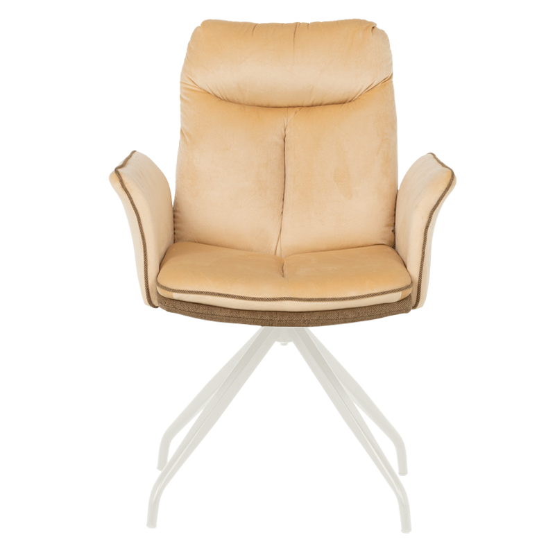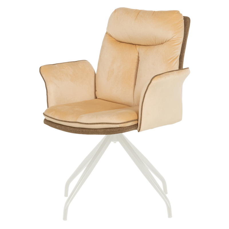 MARLOW 1 е трапезен стол с модерна визия. Той разполага с широки седалка и облегалка, тапицирани в мека дамаска, допълнени с възглавници за максимален комфорт. Подлакътниците повишават удобството на седящия. Основата е изработена от метал в елегантен кремав цвят и предлага иновативна функция за 360° въртене. Пълна информация за размерите и характеристиките на модела ще намерите в таблицата в таб/поле "Техническа информация".