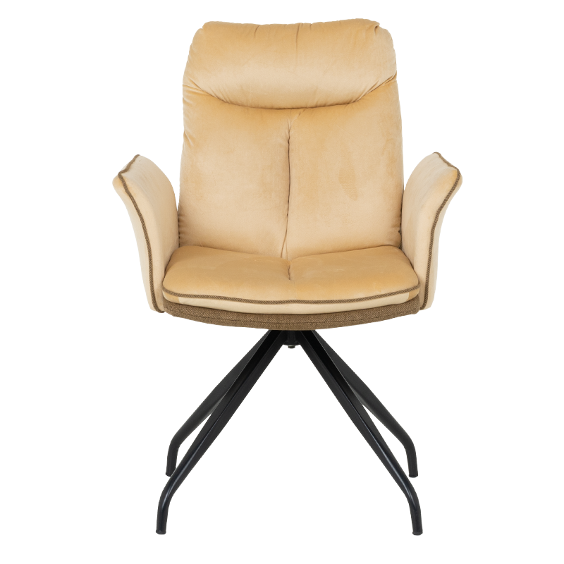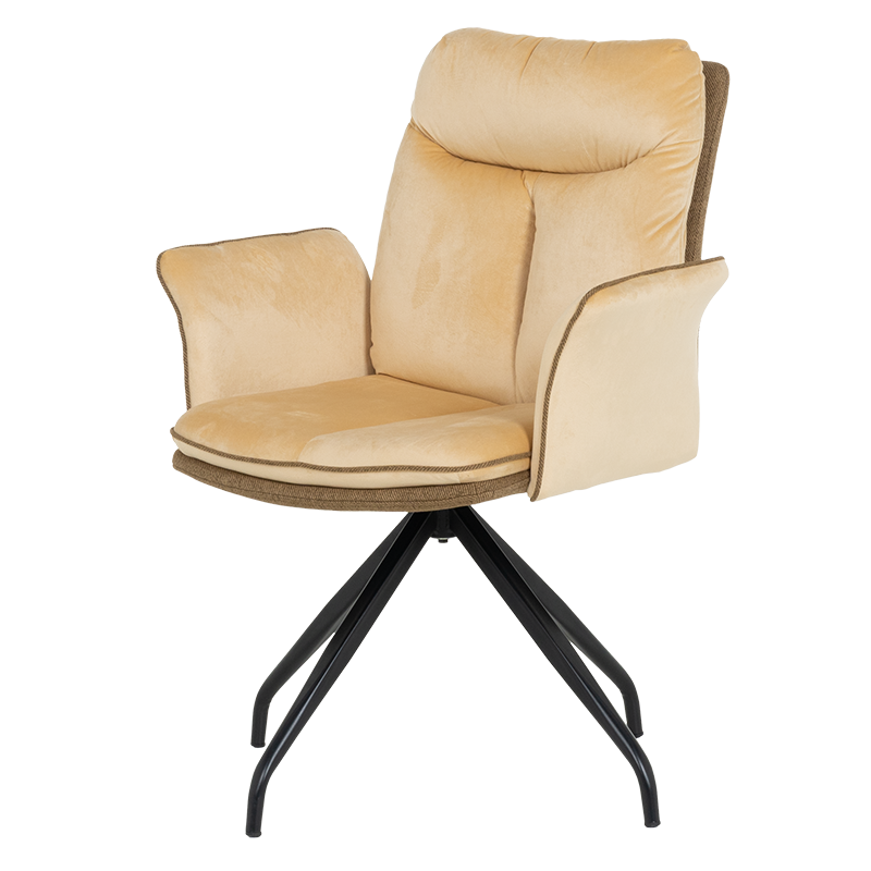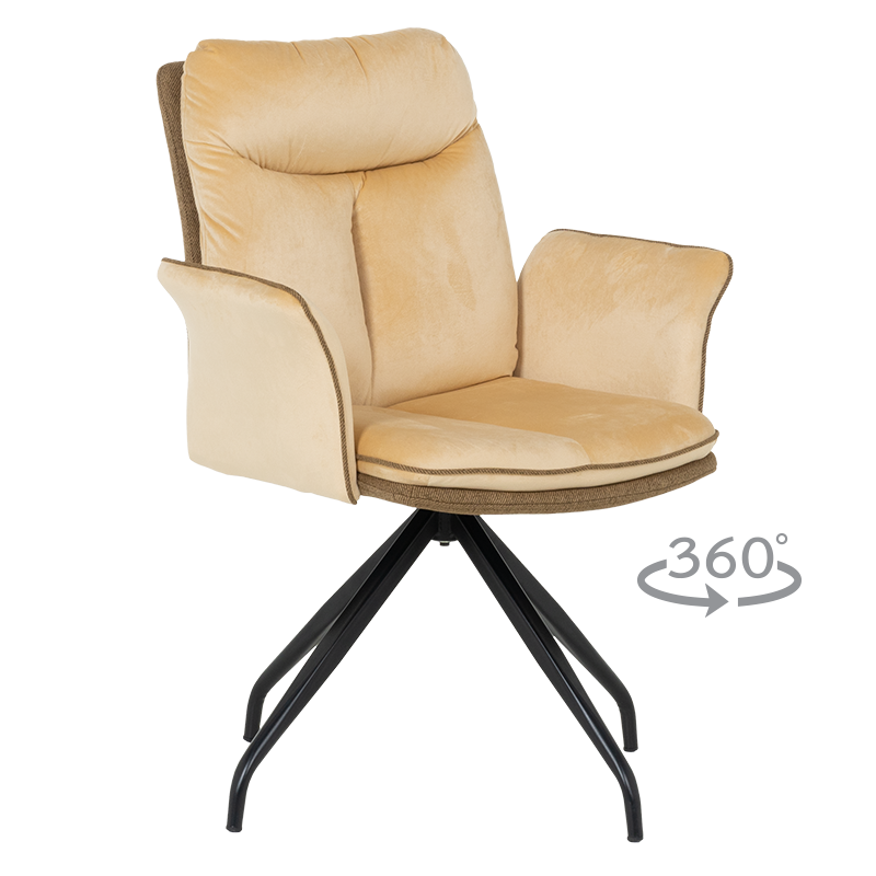 MARLOW 1 е трапезен стол с модерна визия. Той разполага с широки седалка и облегалка, тапицирани в мека дамаска, допълнени с възглавници за максимален комфорт. Подлакътниците повишават удобството на седящия. Основата е изработена от метал в елегантен кремав цвят и предлага иновативна функция за 360° въртене. Пълна информация за размерите и характеристиките на модела ще намерите в таблицата в таб/поле "Техническа информация".