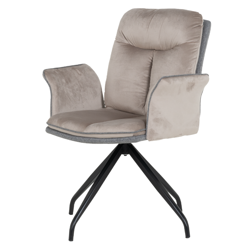 MARLOW 1 е трапезен стол с модерна визия. Той разполага с широки седалка и облегалка, тапицирани в мека дамаска, допълнени с възглавници за максимален комфорт. Подлакътниците повишават удобството на седящия. Основата е изработена от метал в елегантен кремав цвят и предлага иновативна функция за 360° въртене. Пълна информация за размерите и характеристиките на модела ще намерите в таблицата в таб/поле "Техническа информация".
