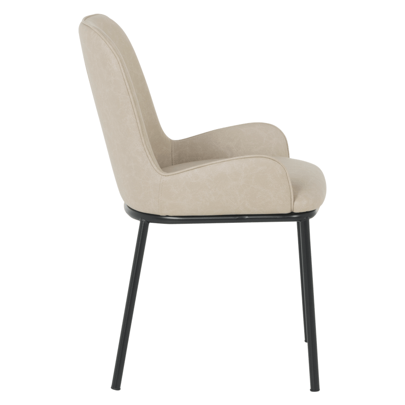Трапезен стол WALDEN има изчистена и стилна визия, която се вписва чудесно в интериора у дома или в този на стилни заведения и ресторанти. Горната част е изработена от дамаска, а основата е от метал, праховобоядисан в черно. Моделът разполага и с подлакътници, които освен, че придават завършеност на визията му, носят и допълнителен комфорт. Пълна информация за размерите и характеристиките на модела ще намерите в таблицата в таб/поле "Техническа информация".