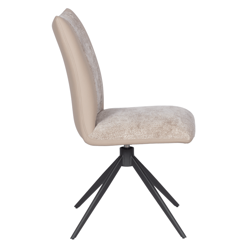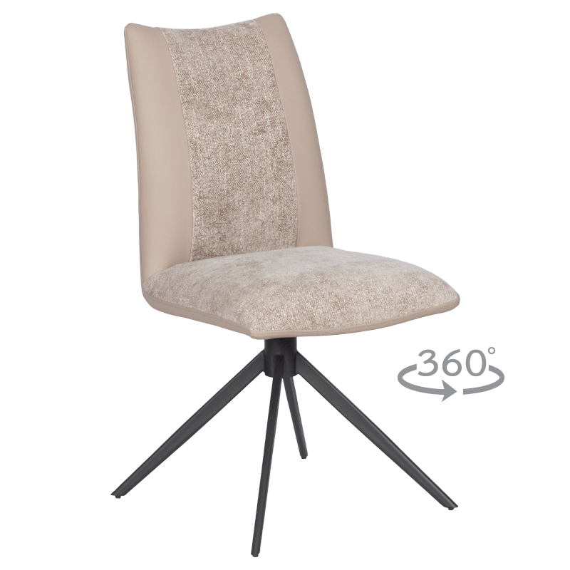 TULSA е трапезен стол с удобни седалка и облегалка, изработени от висококачествени дамаска и силиконова кожа, както и стабилни крака от праховобоядисан метал. Моделът разполага с функция за 360° въртене на основата и връщането ѝ в изходяща позиция. Със своя модерен дизайн, той е подходящ както за трапезарията у дома, така и за интериора на заведения. Пълна информация за размерите и характеристиките на модела ще намерите в таблицата в таб/поле "Техническа информация".