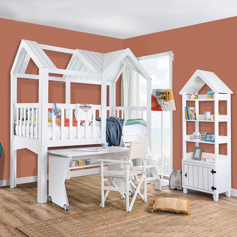 Детско легло къща MIAMI 90 x 200 позволява да се възползвате максимално от пространството в стаята. Има ергономичен дизайн и е достатъчно високо, да се използва като работна зона с бюро Miami или детска площадка. Изработено е от 18 мм и 25 мм ПДЧ, с крака от MDF профил, което гарантира здравина и дълготрайност. Пълна информация за размерите и характеристиките на модела ще намерите в таблицата в таб/поле "Техническа информация".