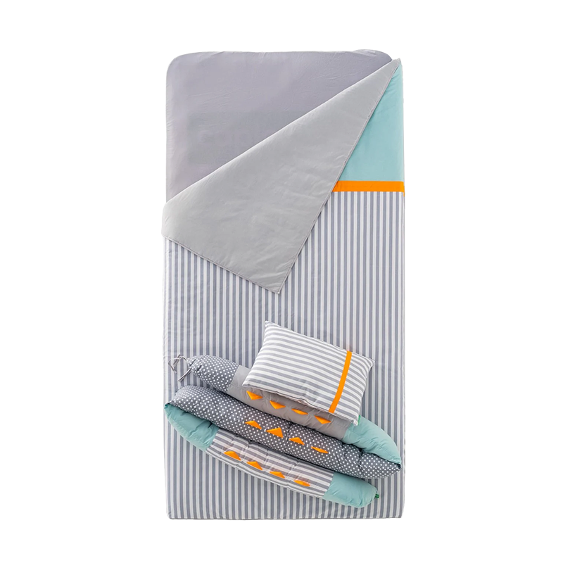 Комплект детско шалте и декоративни възглавници BIRD HOUSE включва шалте с размер 142х205 см, малка възглавница с размер 40х55 см, голяма, пришита, възглавница с размер 28х330 см. Шалтето съдържа 130 gr/m2 термо вклакна. В продуктите са използвани антибактериални, антиалергични и антиканцерогенни материали. Препоръчва се химическо чистене на възглавници и покривки за легло, чаршафите и калъфките за възглавници могат да се перат в пералня. Пълна информация за размерите и характеристиките на модела ще намерите в таблицата в таб/поле "Техническа информация".