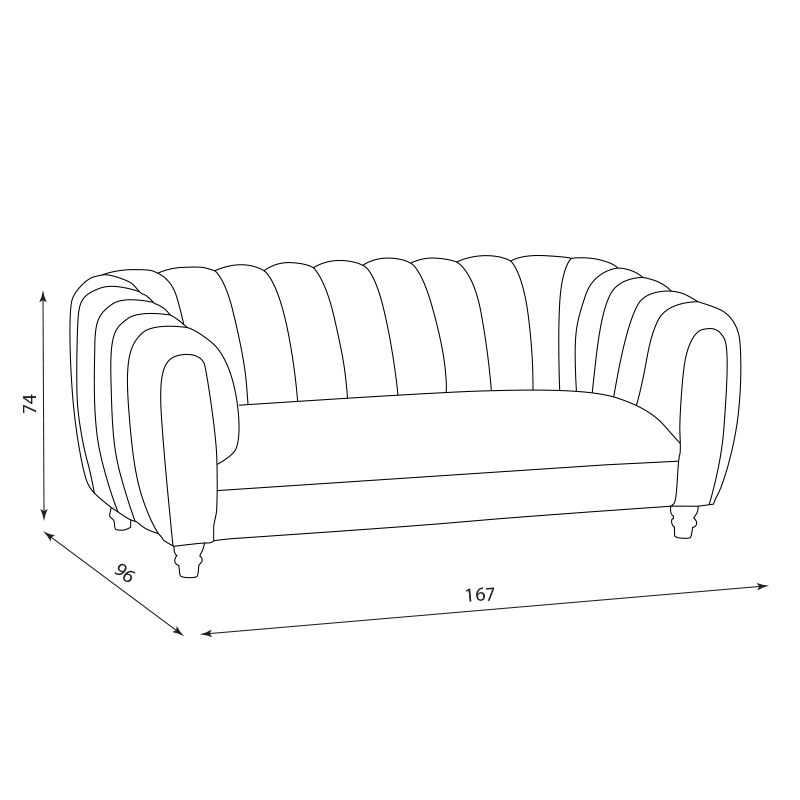 Двуместното канапе KORI е модел със стилен, елегантен дизайн, който притежава едновременно леко ретро излъчване и модерна визия. Изработено е от висококачествени материали – стабилна конструкция от дърво и метал, пълнеж със силиконова вата и покет пружини за максимално удобство и нежна, здрава дамаска. Пълна информация за размерите и характеристиките на модела ще намерите в таблицата в таб/поле "Техническа информация".