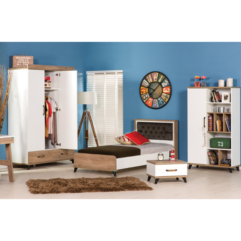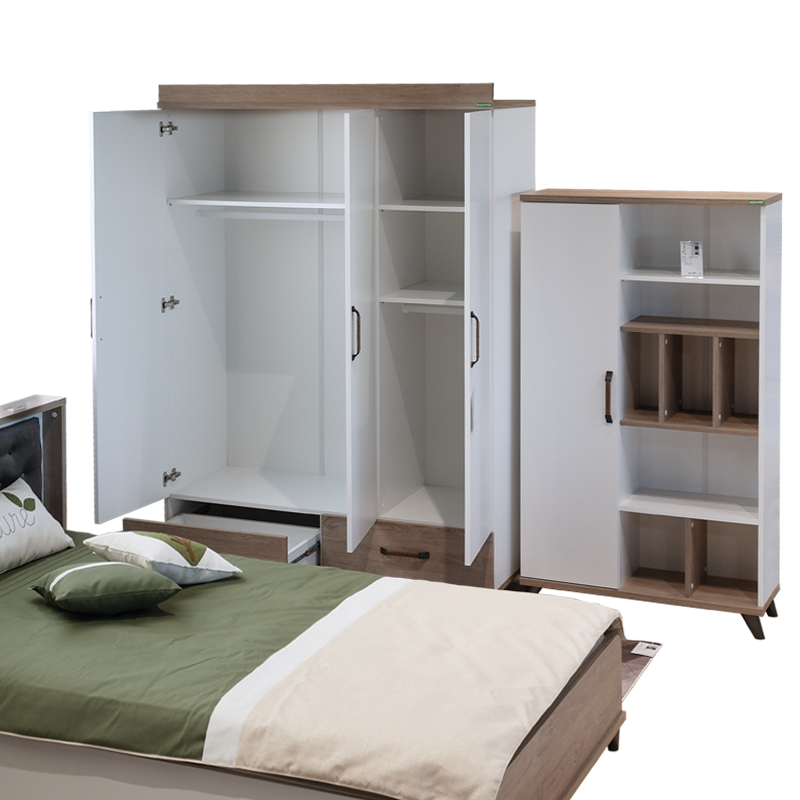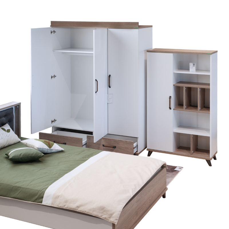 Трикрилен гардероб NATURA е проектиран така, че да внася едновременно елегантност и ред в стаята на тийнейджъра у дома. Със своя модерен и функционален дизайн, той ще отговори на нуждите на всеки младеж. Хармонията между цветовете бяло и кафяво с дървесен акцент придава на стаята просторен и стилен вид.