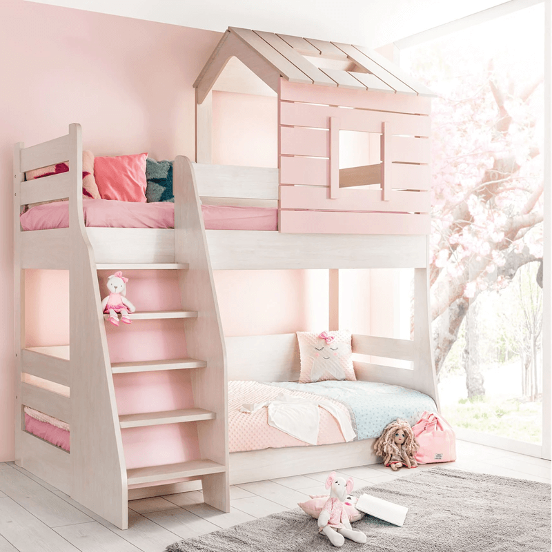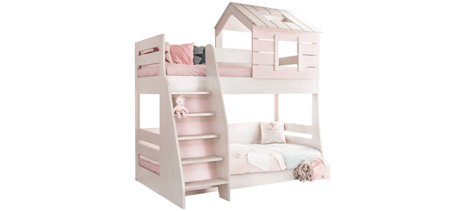 Двуетажно детско легло Pink House е идеално за споделяне с братя и сестри и ще донесе радост в стаята! Благодарение на своя двуетажен дизайн, то спестява място, оставяйки повече пространство за игра. Леглото на горния етаж наподобява къща с покрив и малък прозорец, което добавя уют и чар. На долния етаж има голямо и удобно легло, осигуряващо комфортен сън. Изкачването по стълбите е истинско забавление. Пълна информация за размерите и характеристиките на модела ще намерите в таблицата в таб/поле "Техническа информация".