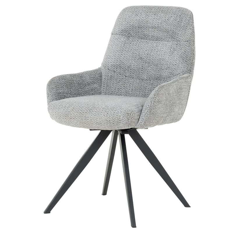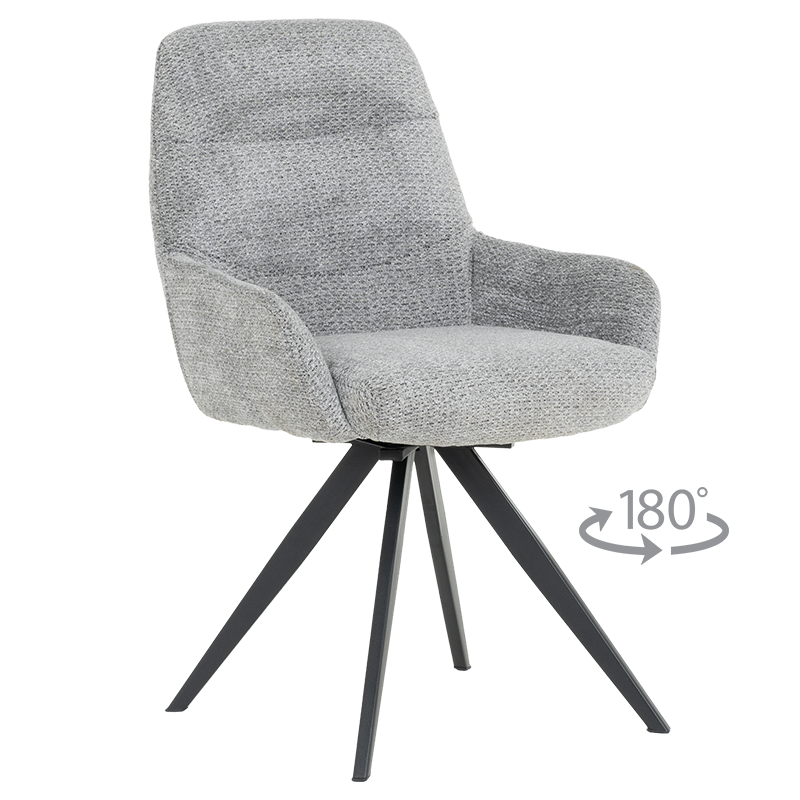 Трапезен стол ASCOT се отличава със стилна и изчистена визия, което го прави подходящ за различни интериори. Моделът разполага с подлакътници, облегалка и седалка, изработени от приятна на допир дамаска. Праховобоядисаната метална основа осигурява стабилност на седящия. Функцията за 180°-градусово завъртане на седалката и връщането ѝ в изходна позиция е практична и дава свобода на движение.