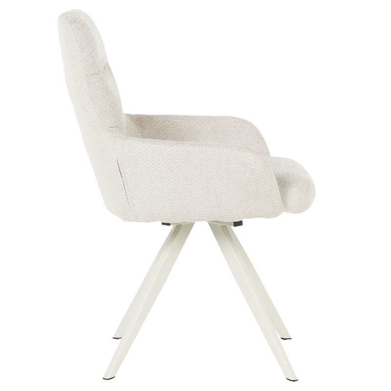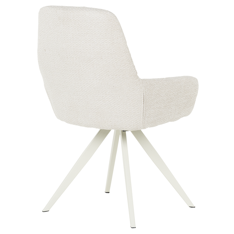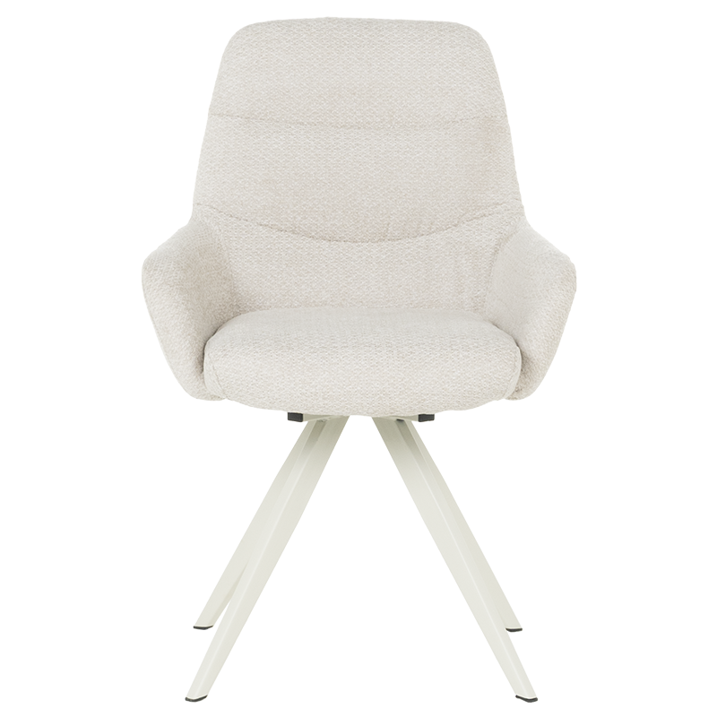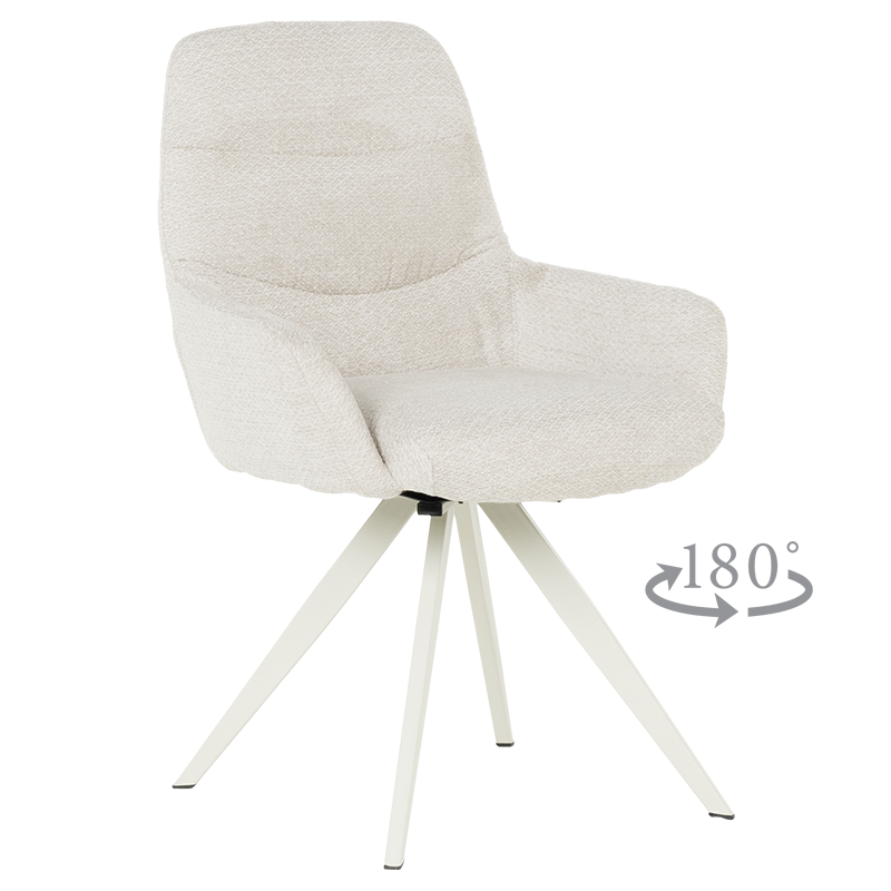 Трапезен стол ASCOT се отличава със стилна и изчистена визия, което го прави подходящ за различни интериори. Моделът разполага с подлакътници, облегалка и седалка, изработени от приятна на допир дамаска. Праховобоядисаната метална основа осигурява стабилност на седящия. Функцията за 180°-градусово завъртане на седалката и връщането ѝ в изходна позиция е практична и дава свобода на движение. Пълна информация за размерите и характеристиките на модела ще намерите в таблицата в таб/поле "Техническа информация".