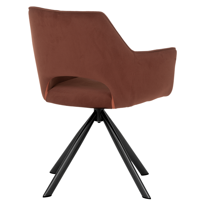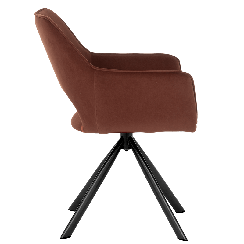 Трапезен стол READING има удобни подлакътници, широка облегалка и комфортна седалка, изработени от висококачествена дамаска. Нестандартната му основа е от праховобоядисан метал. Моделът разполага и с много практична функция за въртене на седалката на 360°. Пълна информация за размерите и характеристиките на модела ще намерите в таблицата в таб/поле "Техническа информация".