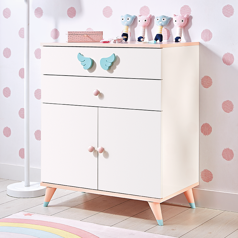 С детски скрин UNICORN можете да спасите детската стая от посредствеността, създавайки й магическа и приказна среда. Този скрин предлага идеално място за вашите деца да съхраняват редовно вещите си, като същевременно подхранват въображението и творчеството си. Големите чекмеджета позволяват на децата да съхраняват всичките си вещи от дрехи до играчки, за един подреден детски свят. Горната повърхност е голяма и предлага идеално пространство за подреждане на аксесоари, нощна лампа и малки играчки. Здравата му структура от 18 мм ПДЧ осигурява дълготрайна употреба, а специално проектираният дизайн на краката спомага за по-лесното почистване под скрина дори с прахосмукачка робот. Пълна информация за размерите и характеристиките на модела ще намерите в таблицата в таб/поле "Техническа информация".
