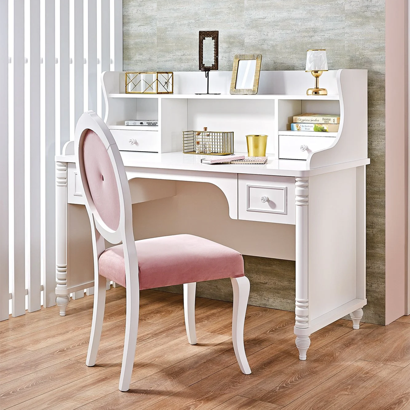 Детско бюро NIL ще се превърне в любима мебел на тийнеджъра у дома, когато учи, рисува и се забавлява. Вписва се чудесно във всеки интериор, благодарение на своя универсален бял цвят. За максимално удобство моделът разполага с USB порт. Практичните чекмеджета разполагат с мехазниъм за плавно затваряне. Пълна информация за размерите и характеристиките на модела ще намерите в таблицата в таб/поле "Техническа информация".