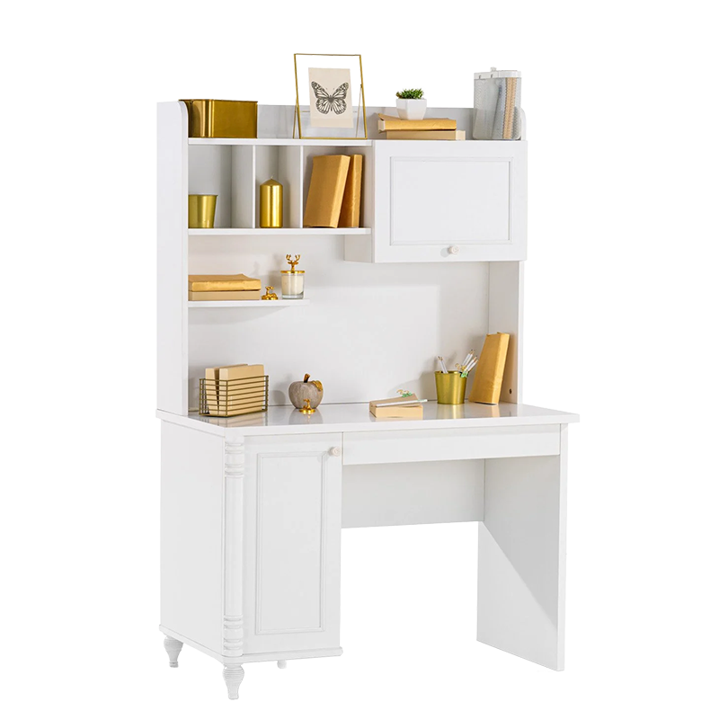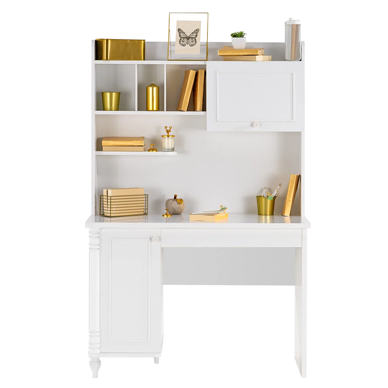 Детско бюро с етажерка NIL предлага просторно място за рисуване, учене и компютърни игри. Бюрото е оборудвано с USB захранваща станция, която улеснява работата с мобилни устройства. Вратите се отварят и затварят безшумно и безопасно благодарение на функцията на спирачните панти. Изработено от първокачествено 18 мм ПДЧ, бюрото разполага и с 10 см високи крачета от ABS материал, подходящи за работа с прахосмукачка робот. Пълна информация за размерите и характеристиките на модела ще намерите в таблицата в таб/поле "Техническа информация".