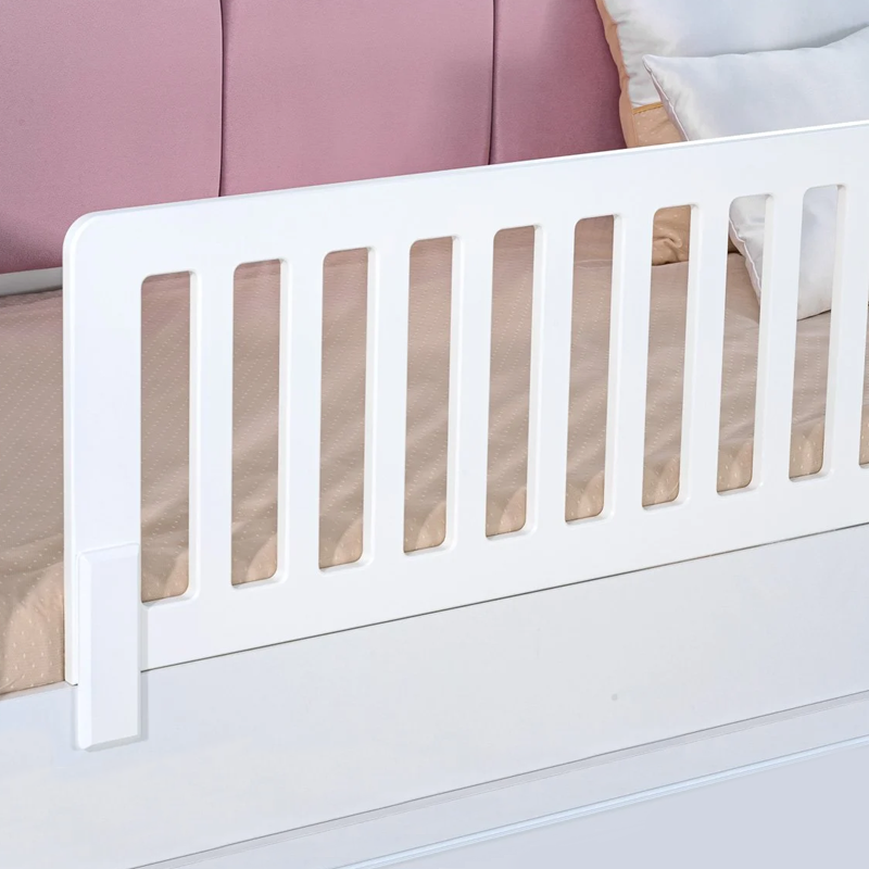 Преграда за детско легло NIL е проектирана с мисъл за децата. Може лесно да се монтира отстрани на леглото, а здравата структура от 18 мм MDF гарантира, че малките деца са в безопасност в леглото. Произведена в съответствие с европейски стандарт за безопасност EN716 и подходяща за Монтесори употреба, преграда за детско легло NIL е идеална мярка за безопасност, особено за активно спящи деца, и гарантира, че родителите се чувстват по-комфортно през цялата нощ. Пълна информация за размерите и характеристиките на модела ще намерите в таблицата в таб/поле "Техническа информация".