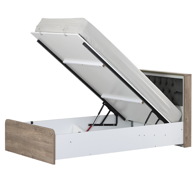 Детското легло с ракла NATURA предлага съвършеното съчетание на комфорт и функционалност. Изработено от висококачествено ПДЧ с дебелина 18 мм, леглото разполага с подматрачна рамка и удобна ракла с амортисьор за лесно повдигане, предоставяща допълнително място за съхранение на вещи. Моделът е подходящ за матрак с размери 120 х 200. Този стилен и практичен модел е идеален за всяка тийнейджърска стая. Пълна информация за размерите и характеристиките на модела ще намерите в таблицата в таб/поле "Техническа информация".