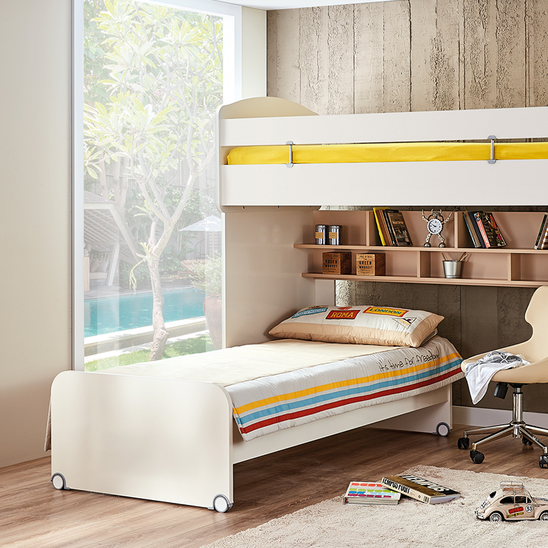 Детско легло JOYIN е практично и стилно решение за детската стая. Изработено от висококачествено ПДЧ с дебелина 18 мм, то осигурява стабилност и дълготрайна употреба. Леглото е предназначено за матрак с размери 90x190 см и включва подматрачна рамка. Снабдено е с колелца за лесно преместване, като предните колела имат стопери за допълнителна стабилност. Пълна информация за размерите и характеристиките на модела ще намерите в таблицата в таб/поле "Техническа информация".