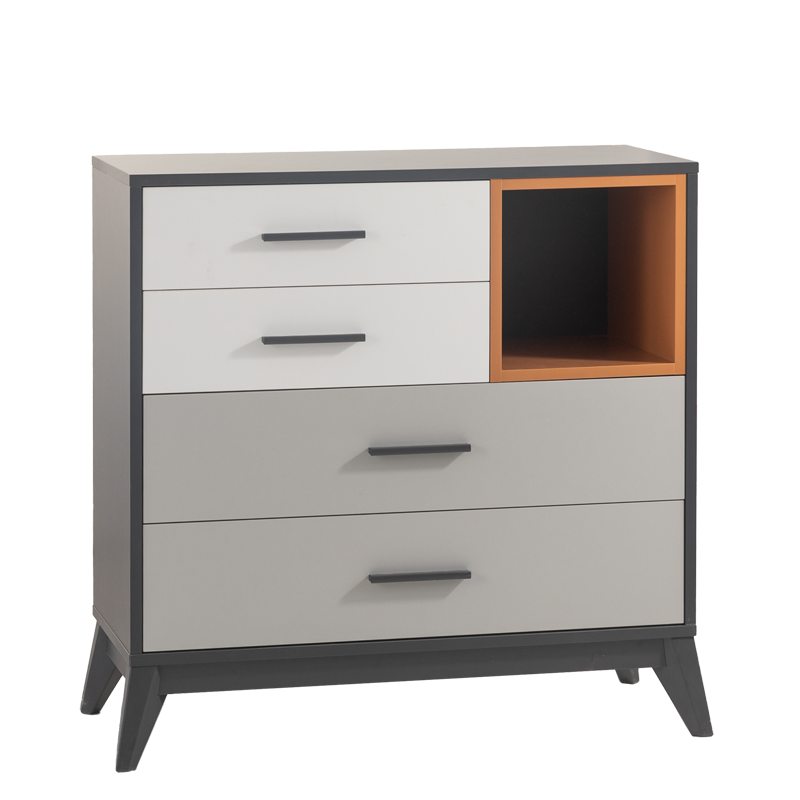 Детският скрин за дрехи BREDA е стилно и практично решение за организиране на детския гардероб. Със своя компактен и функционален дизайн, скринът разполага с 4 просторни чекмеджета, подходящи за съхранение на дрехи, играчки или аксесоари. Изработен от висококачествени материали, той е издръжлив и подходящ за дългосрочна употреба. Елегантният му вид и неутралната визия го правят идеален за всяка детска стая. Пълна информация за размерите и характеристиките на модела ще намерите в таблицата в таб/поле "Техническа информация".