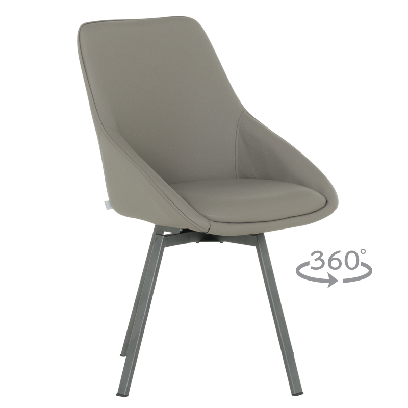 Трапезният стол WIGAN 2 впечатлява с изчистения си и стилен дизайн, допълнен от практичната функция за 360° въртене. Изработен от висококачествена силиконова кожа, столът не само придава луксозно усещане, но е и изключително издръжлив и лесен за поддръжка. Металните крака с прахово боядисване гарантират стабилност и дълготрайност, което прави WIGAN идеален избор за съвременния интериор. Пълна информация за размерите и характеристиките на модела ще намерите в таблицата в таб/поле "Техническа информация".