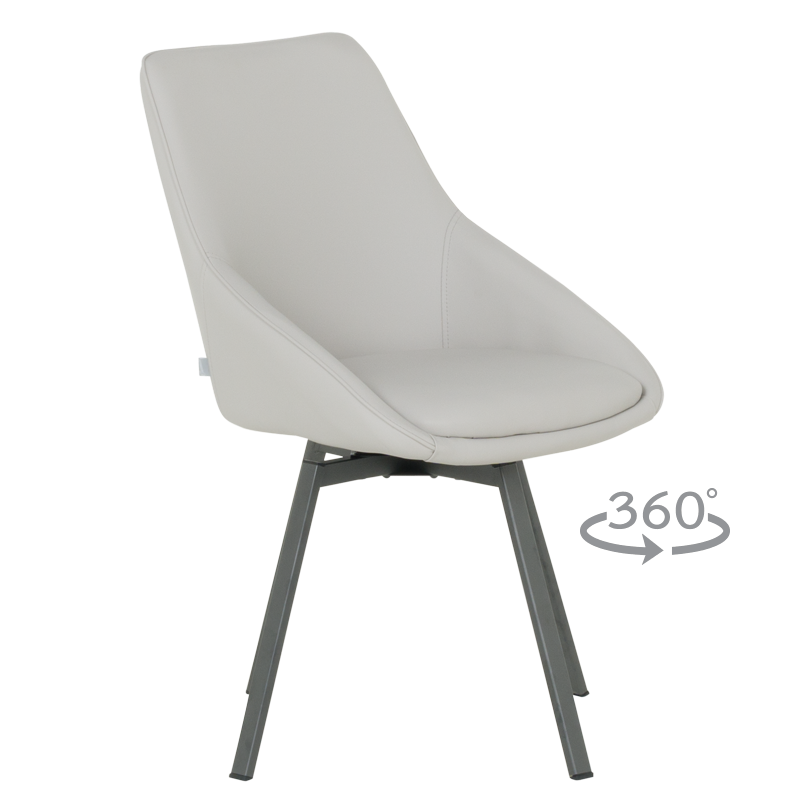 Трапезният стол WIGAN 2 впечатлява с изчистения си и стилен дизайн, допълнен от практичната функция за 360° въртене. Изработен от висококачествена силиконова кожа, столът не само придава луксозно усещане, но е и изключително издръжлив и лесен за поддръжка. Металните крака с прахово боядисване гарантират стабилност и дълготрайност, което прави WIGAN идеален избор за съвременния интериор. Пълна информация за размерите и характеристиките на модела ще намерите в таблицата в таб/поле "Техническа информация".