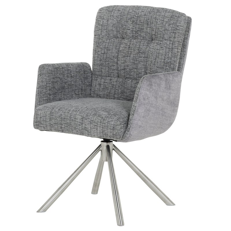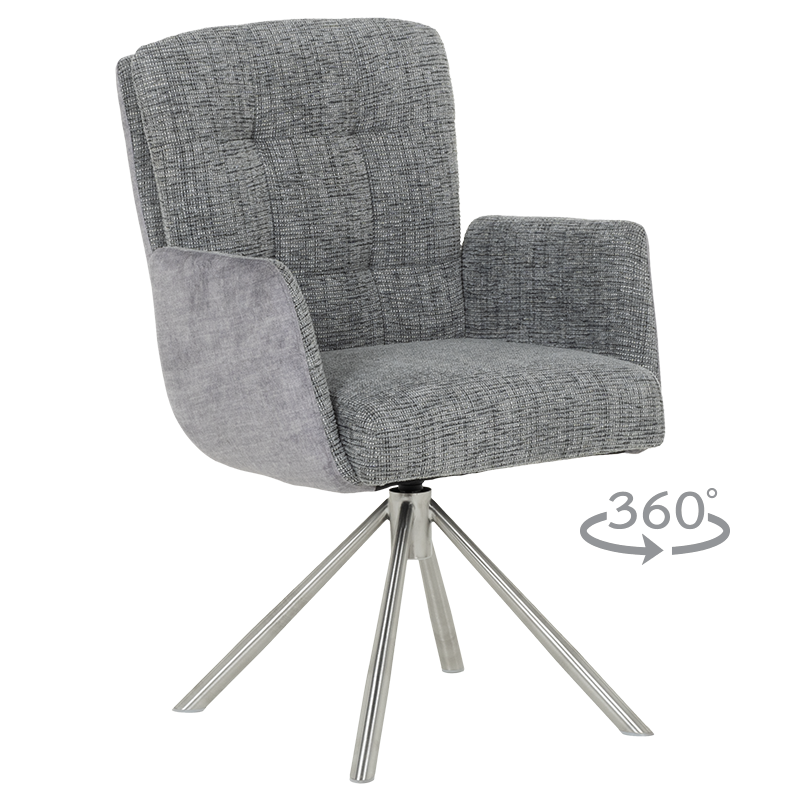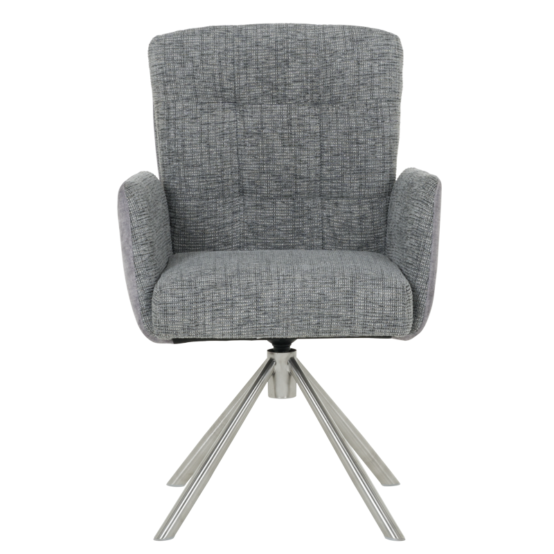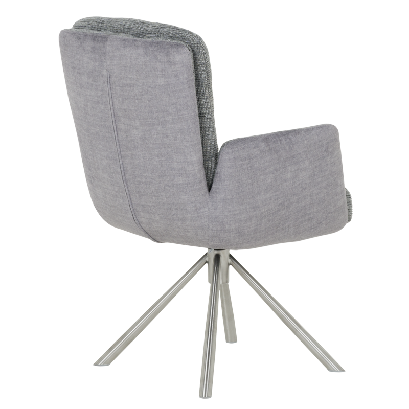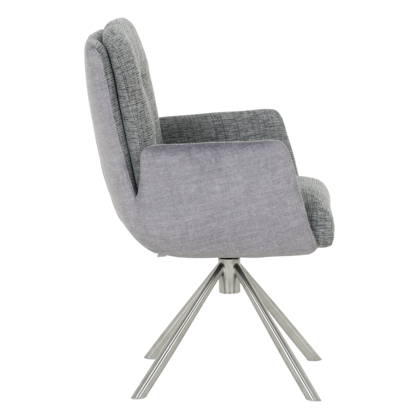 Трапезният стол KEILA предлага перфектен баланс между модерен дизайн и изключителна функционалност. Седалката, тапицирана с висококачествена дамаска и оборудвана с покет пружини, осигурява ненадминат комфорт, а подлакътниците допълват усещането за уют. Релакс облегалката с накланяне назад е ключова функция, която осигурява допълнително удобство за почивка и релаксация. Базата от неръждаема стомана не само придава елегантен външен вид, но и гарантира стабилност. Пълна информация за размерите и характеристиките на модела ще намерите в таблицата в таб/поле "Техническа информация".