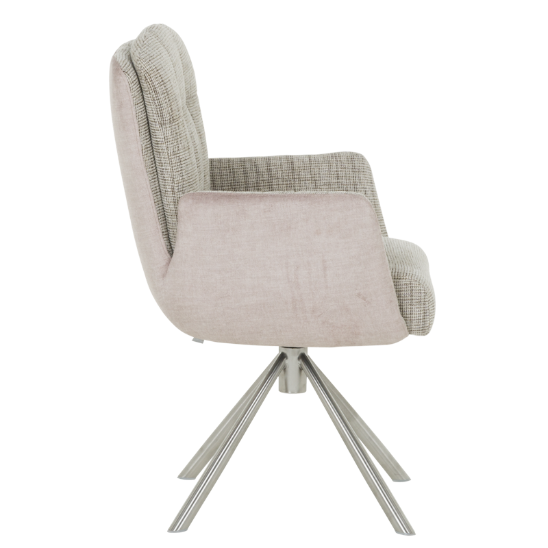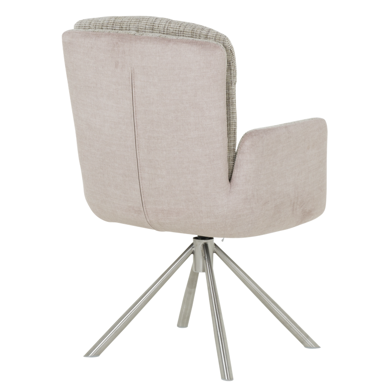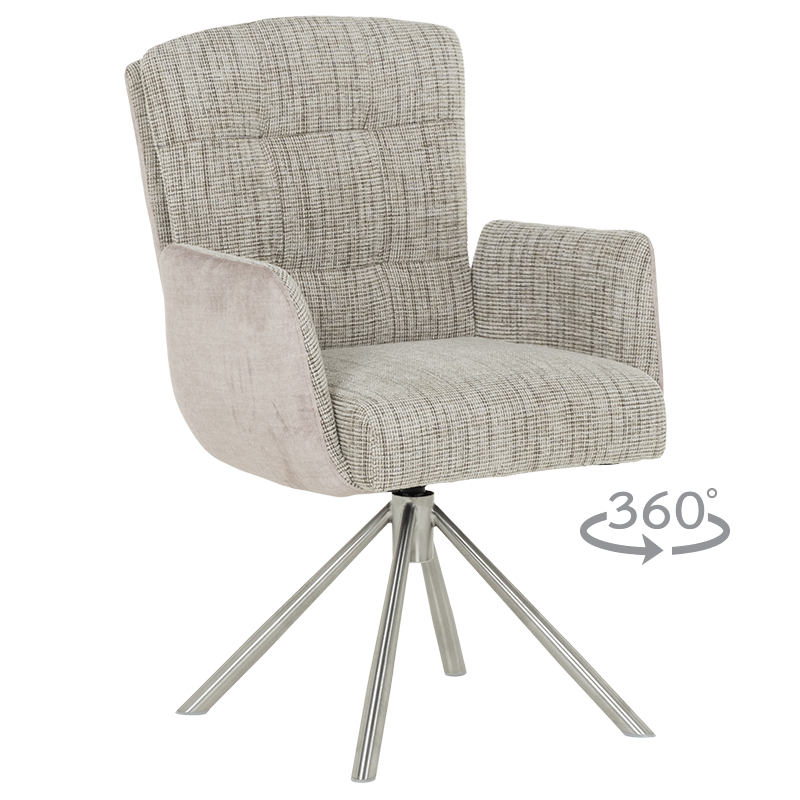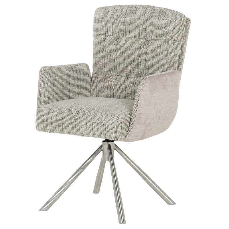 Трапезният стол KEILA предлага перфектен баланс между модерен дизайн и изключителна функционалност. Седалката, тапицирана с висококачествена дамаска и оборудвана с покет пружини, осигурява ненадминат комфорт, а подлакътниците допълват усещането за уют. Релакс облегалката с накланяне назад е ключова функция, която осигурява допълнително удобство за почивка и релаксация. Базата от неръждаема стомана не само придава елегантен външен вид, но и гарантира стабилност. Пълна информация за размерите и характеристиките на модела ще намерите в таблицата в таб/поле "Техническа информация".