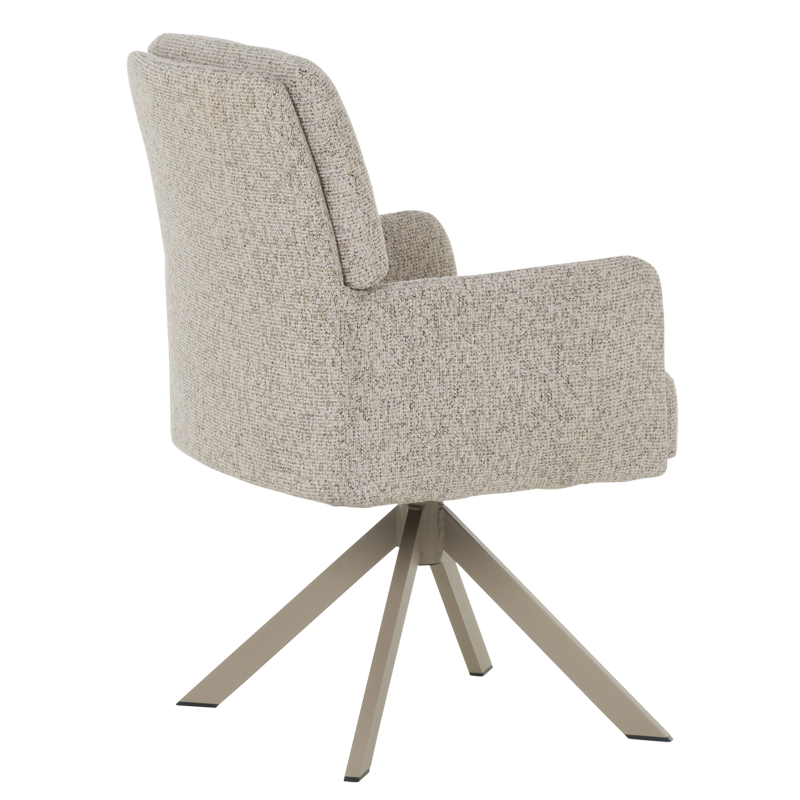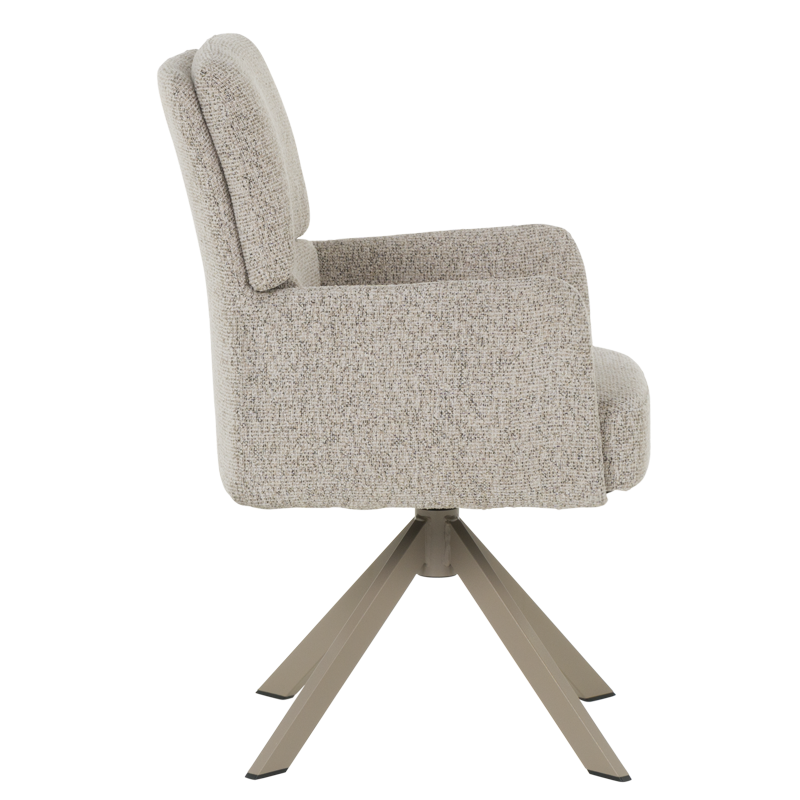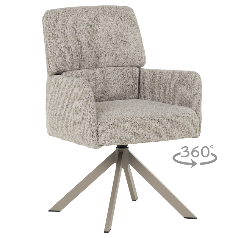 Трапезният стол NARVA съчетава модерен дизайн с изключителна функционалност. Седалката, тапицирана с висококачествена дамаска и оборудвана с покет пружини, предлага ненадминат комфорт, а удобните подлакътници допълват усещането за уют и релакс. Функцията за въртене на 360° с автоматично връщане в начална позиция осигурява практичност и лекота при използване, докато масивната основа от праховобоядисан метал с перлен блясък придава елегантност и стил. Впечатляващата люлееща функция е невероятна екстра, която допълнително засилва усещането за комфорт и релаксация. Столът издържа натоварване до 120 кг, което гарантира неговата устойчивост и дълготрайна употреба, превръщайки NARVA в идеалния избор за всяка съвременна трапезария, където се ценят комфортът и качеството. Пълна информация за размерите и характеристиките на модела ще намерите в таблицата в таб/поле "Техническа информация".