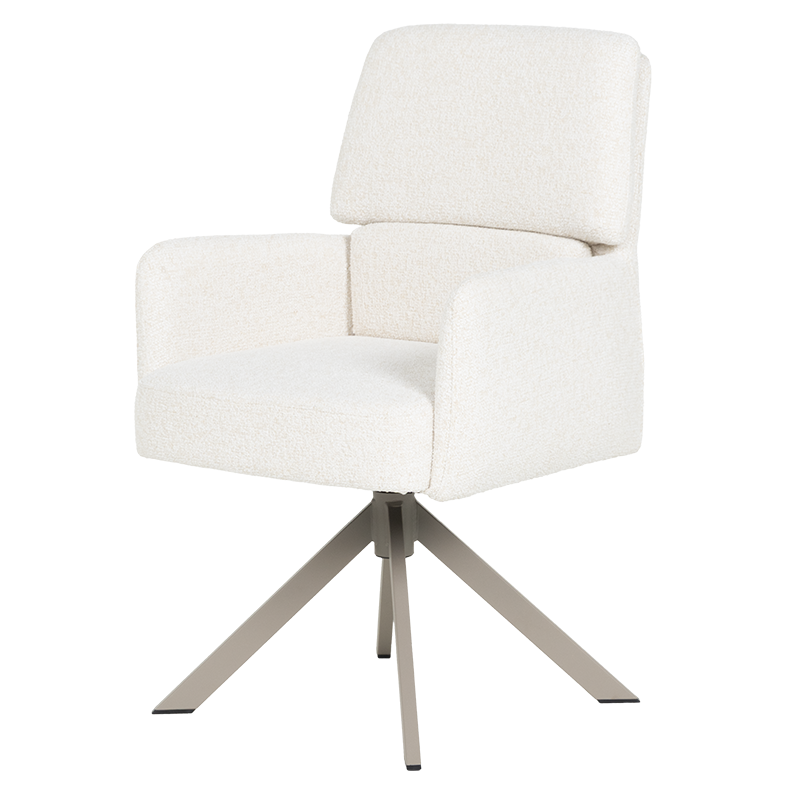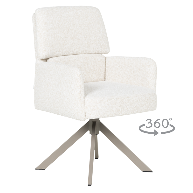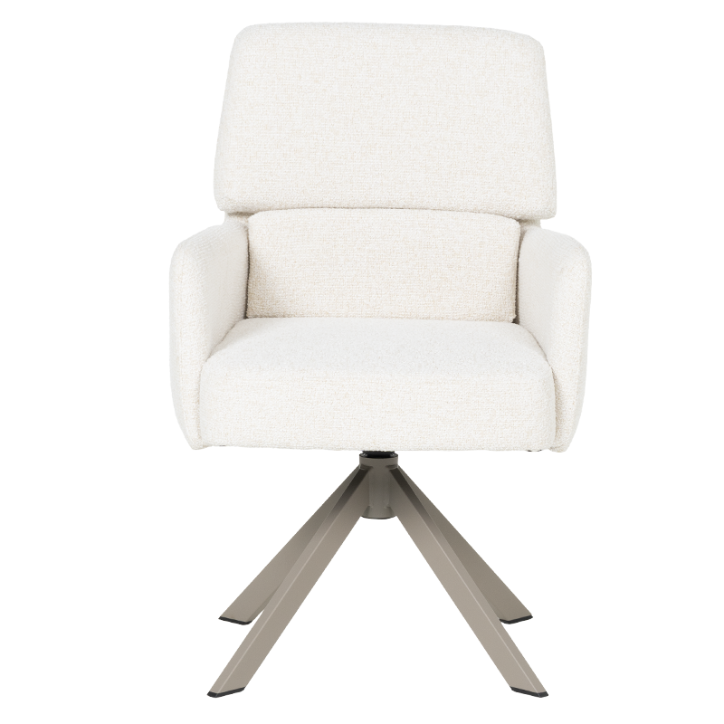 Трапезният стол NARVA съчетава модерен дизайн с изключителна функционалност. Седалката, тапицирана с висококачествена дамаска и оборудвана с покет пружини, предлага ненадминат комфорт, а удобните подлакътници допълват усещането за уют и релакс. Функцията за въртене на 360° с автоматично връщане в начална позиция осигурява практичност и лекота при използване, докато масивната основа от праховобоядисан метал с перлен блясък придава елегантност и стил. Впечатляващата люлееща функция е невероятна екстра, която допълнително засилва усещането за комфорт и релаксация. Столът издържа натоварване до 120 кг, което гарантира неговата устойчивост и дълготрайна употреба, превръщайки NARVA в идеалния избор за всяка съвременна трапезария, където се ценят комфортът и качеството. Пълна информация за размерите и характеристиките на модела ще намерите в таблицата в таб/поле "Техническа информация".