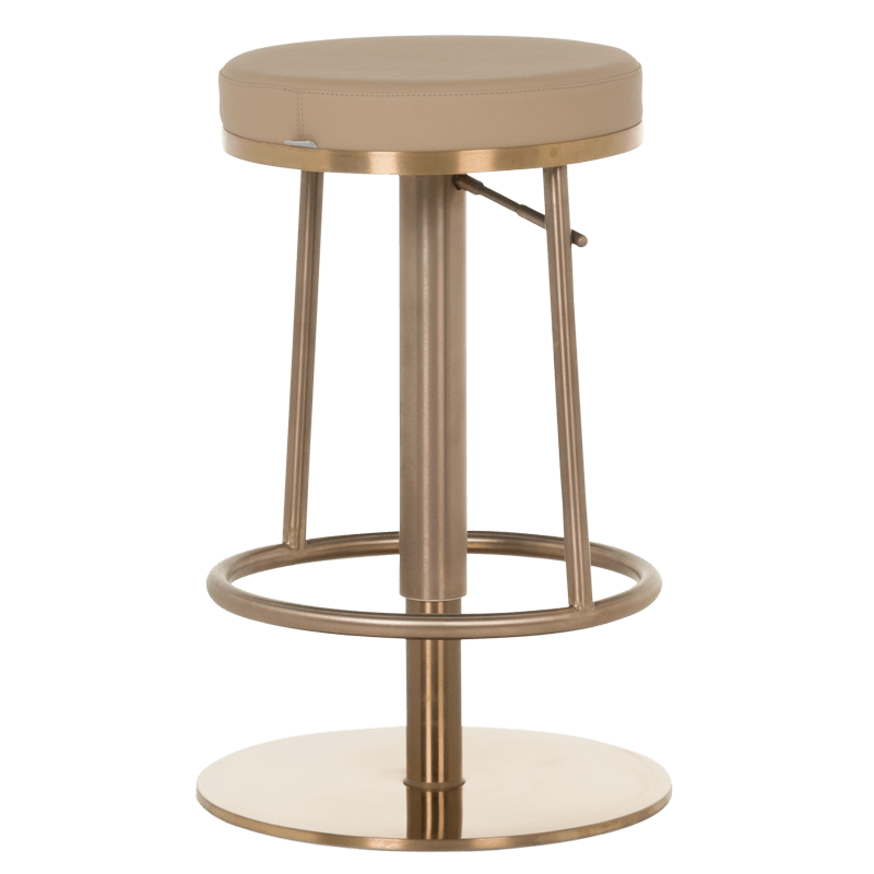 Бар столът BEZU е символ на лукс и изтънченост, съчетавайки модерен дизайн с максимален комфорт. Тапициран във висококачествена еко кожа, той предлага изключителна мекота и стил, придавайки на интериора усещане за елегантност и грижа към детайла. Основата е изработена от иноксова стомана с луксозно полирано покритие със златист финиш, което придава на стола не само издръжливост, но и бляскаво визуално присъствие. Освен впечатляващия си външен вид, BEZU предлага практичност, като в най-ниската си позиция той може да се използва като удобна табуретка. С въртене на 360 градуса и регулируема височина, този стол е перфектният избор за всеки изискан интериор, където стилът и функционалността се преплитат. Пълна информация за размерите и характеристиките на модела ще намерите в таблицата в таб/поле "Техническа информация".