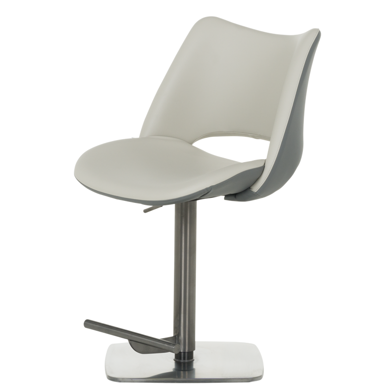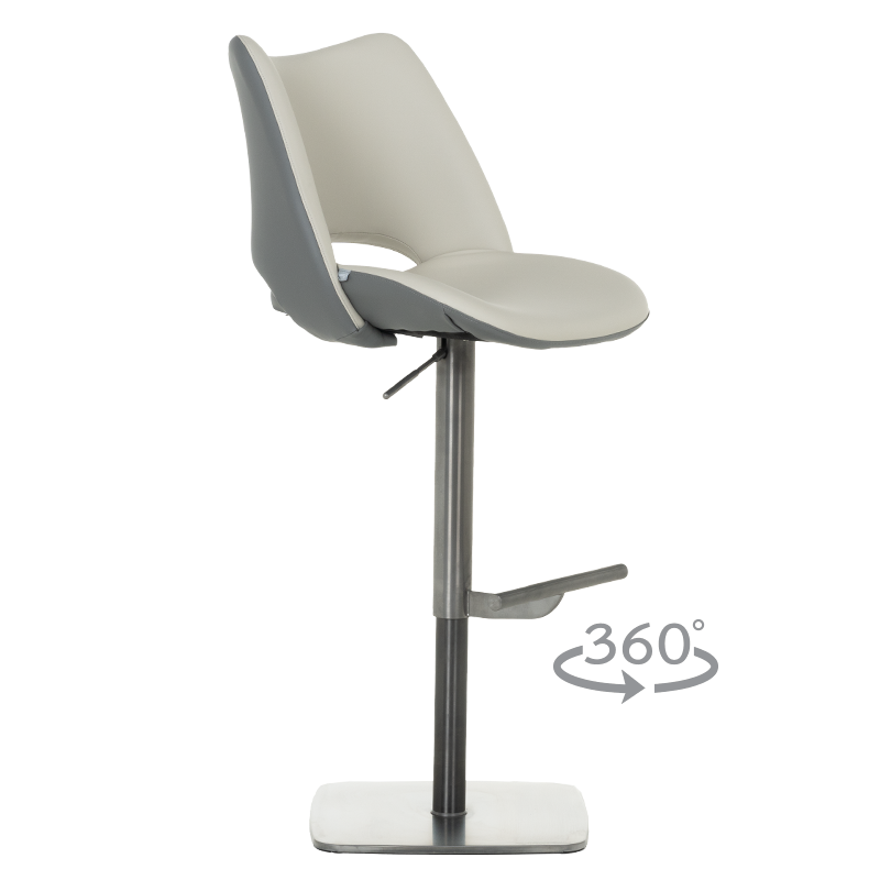 Бар стол MARIRA 2 впечатлява с изчистен и модерен дизайн, който съчетава функционалност и стил. Светлосивата еко кожа придава изтънченост и съвременно излъчване, подходящо за всяко жилищно или търговско пространство. Основата от полирана неръждаема стомана гарантира дълготрайност и стабилност, а удобната 360-градусова ротация улеснява ползването му в различни ситуации. Столът разполага с регулируема височина чрез газов амортисьор и издържа натоварване до 120 килограма, което го прави подходящ за ежедневна употреба. Пълна информация за размерите и характеристиките на модела ще намерите в таблицата в таб/поле "Техническа информация".
